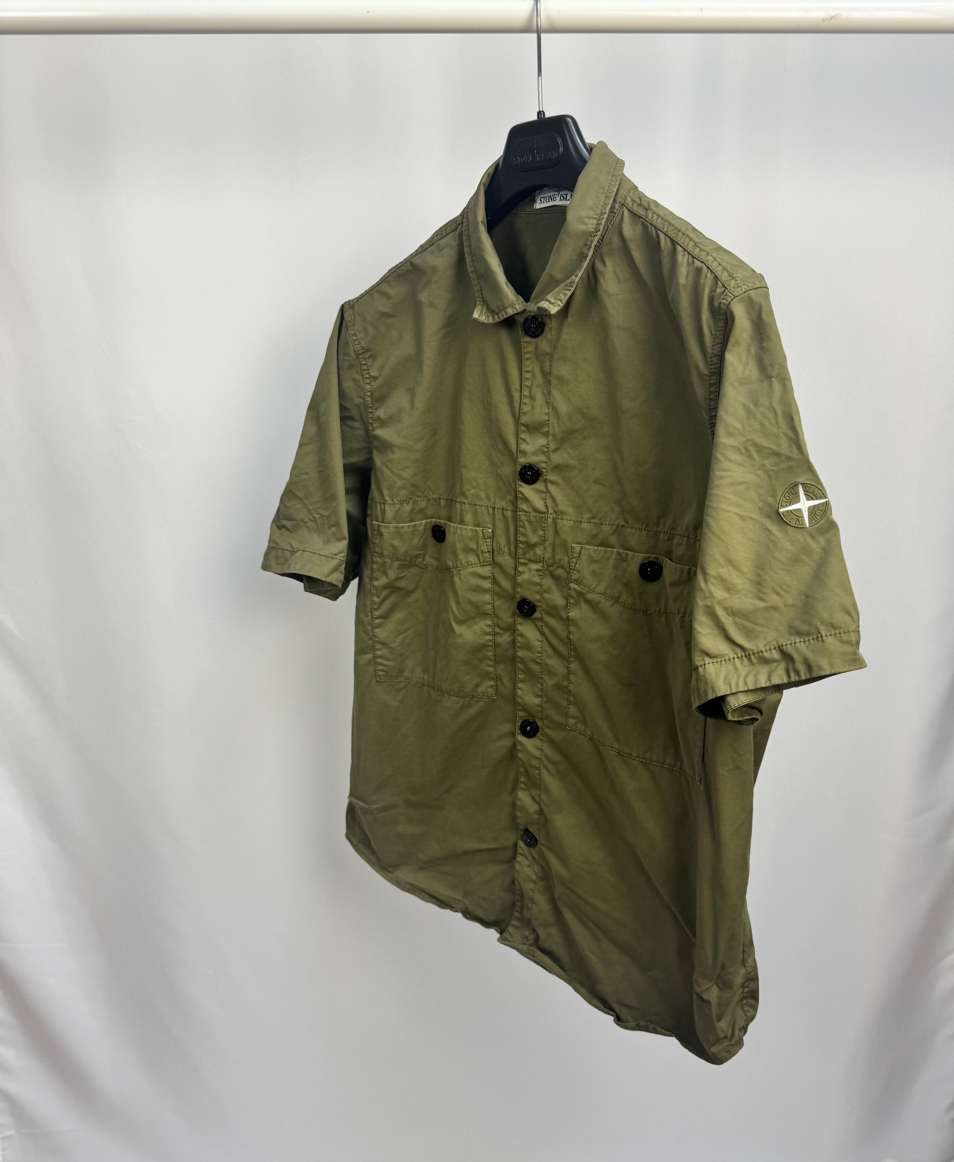Stone Island Short Sleeved Embroidered Logo Overshirt (Olive)